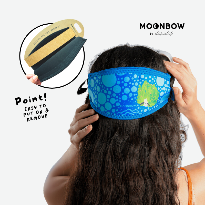 Designed for divers, this soft neoprene cover eliminates hair tangling and prevents discomfort from mask straps, while adding a touch of Moonbow's signature design to your gear.